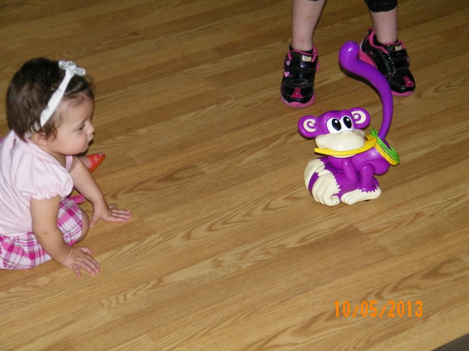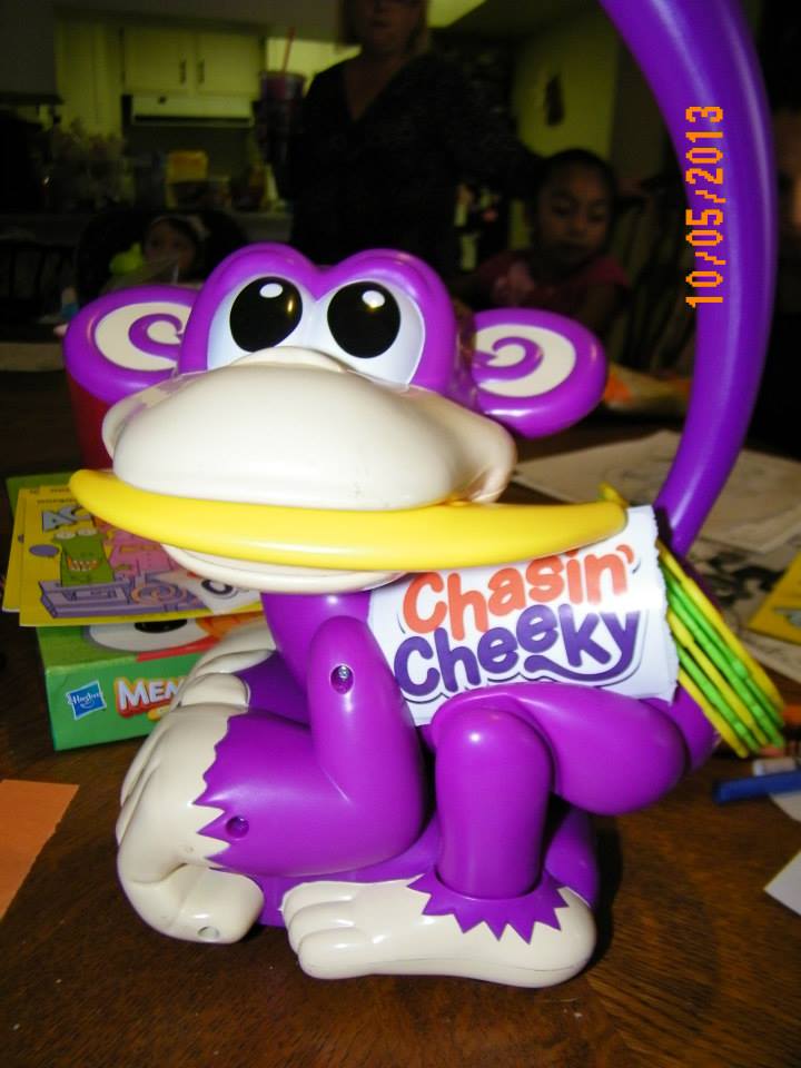Last October we were able to test out Chasin’ Cheeky thanks to House Party. This game is for ages 3+. Chelsea is several little friends between the ages of 3 – 8 so we had her friends come over to test the game. You have to place the 6 rings on the ground and have all of the kids a couple feet away from them to give everyone a fair chance. When you turn on Chasin’ Cheeky you have to run and grab the rings. Chase cheeky down to put the rings on his tail. Once the last ring is on his tail you must pull the banana out of his mouth. Cheeky will start dancing. You have to dance with him. This game would a great gift for siblings and young children between the ages of 3 – 8.