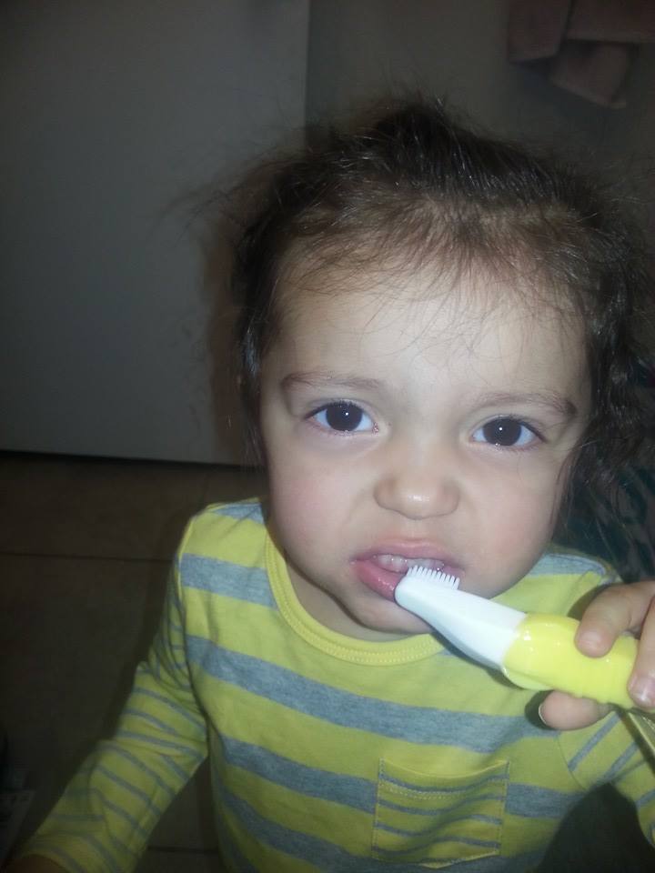 I have been having a difficult time getting Chelsea to brush her teeth. When I saw this toothbrush I wondered if it would actually get her to brush her teeth better or at least let me help her brush her teeth better. So far it has worked wonders. My girlie loves bananas and we always call her our little monkey. I love the fact that this toothbrush is flexible like a teether so she can chew on it as well. Its easy for her small hands to grasp and handle. Its also dishwasher and freezer friendly. Its safer than hard plastic toothbrushes. I would recommend this product to any of my mommy friends. This would be a great stocking stuffer for toddlers and babies. This product is available online at Target.com.