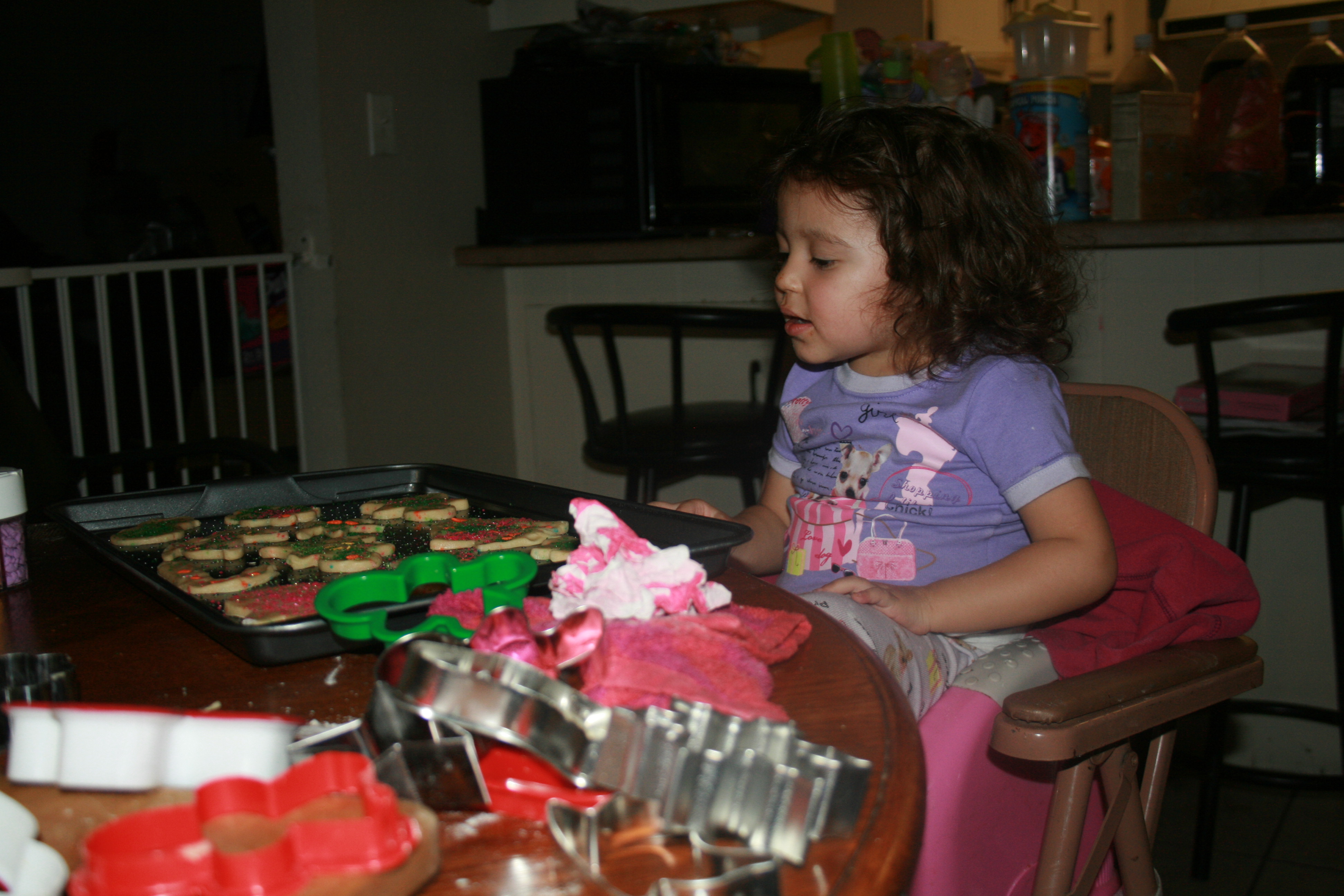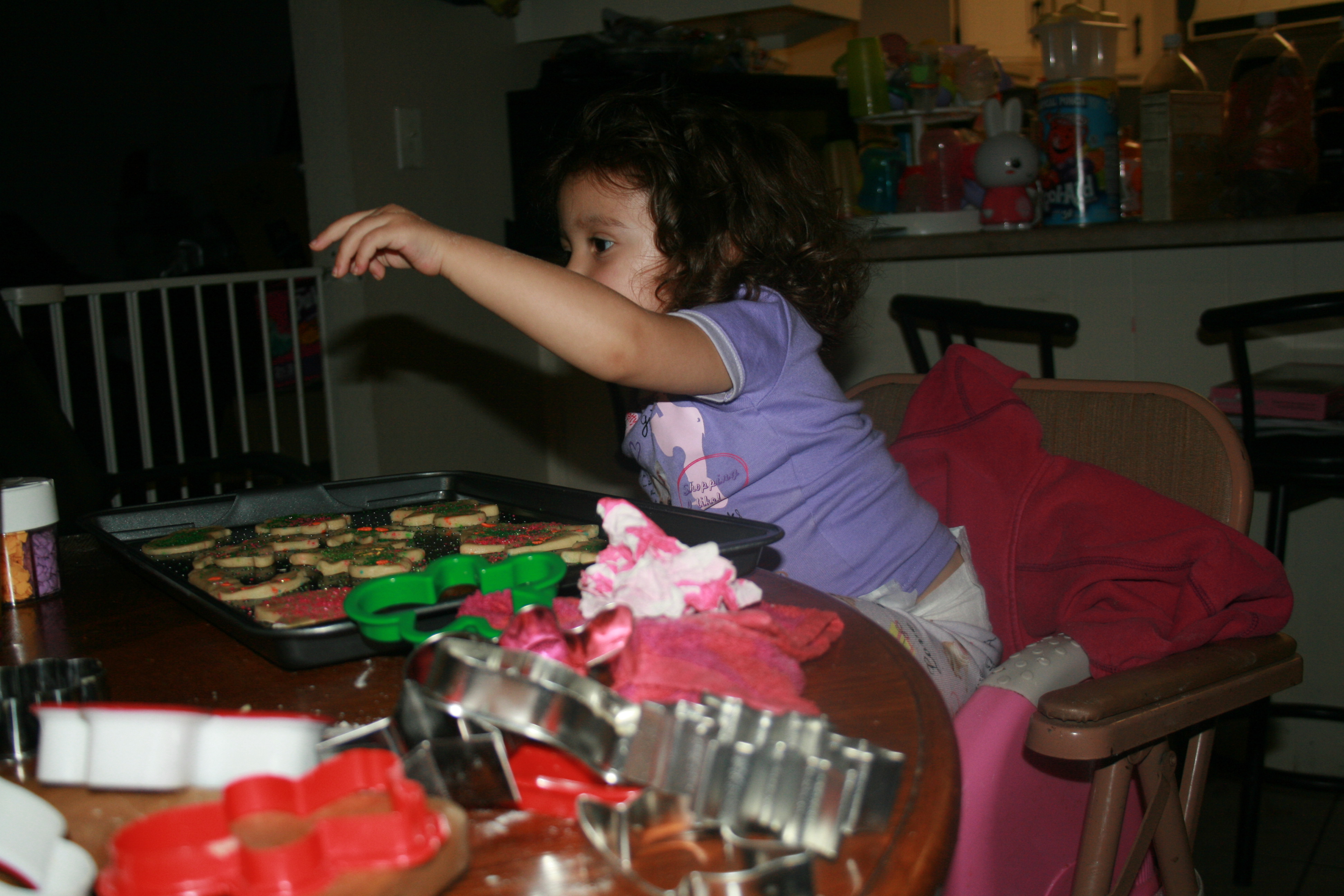 Its always a family tradition to decorate cookies around Christmas time as well as baking other items. Baking is so much fun when your doing it with your love ones. My sister came over to bake with Chelsea and me. We had so much fun cutting out the cookies with cookie cutters and decorating them with sprinkles. Chelsea was having a blast.