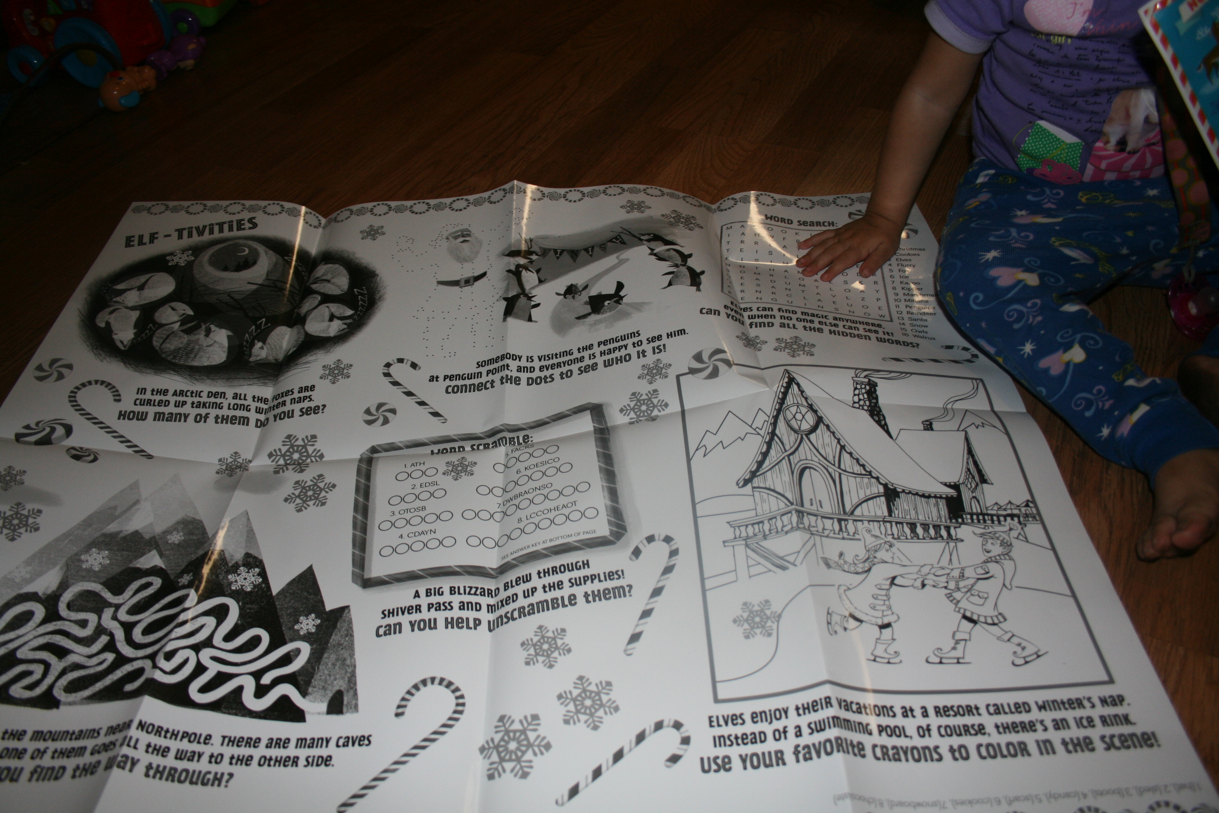 Polar Explorer™ Goggles and Adventure Map: We also got the map, activity sheet, stickers and 3D glasses kit. Chelsea has been enjoying looking at the map to see different parts of Santa’s hometown. I love how on the back of the map is an activity sheet that can be wiped off for re-use.