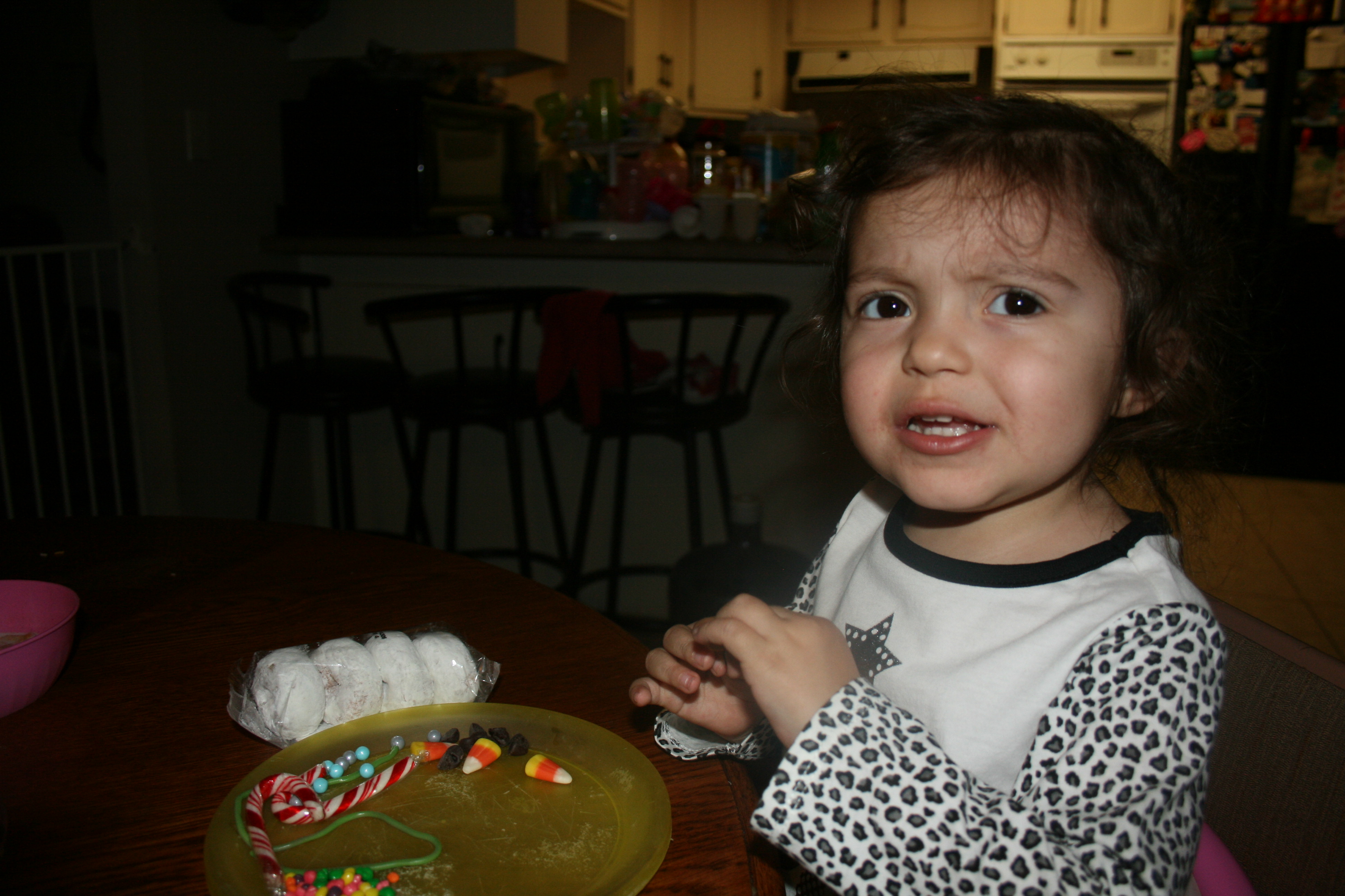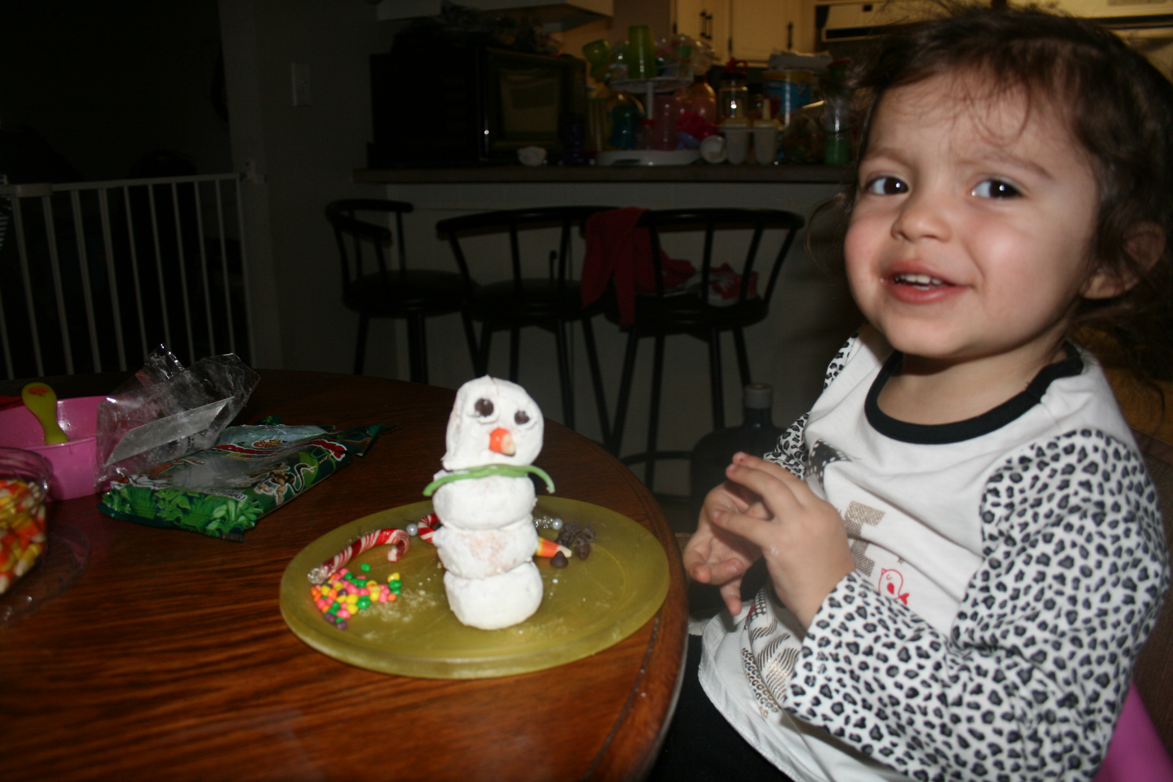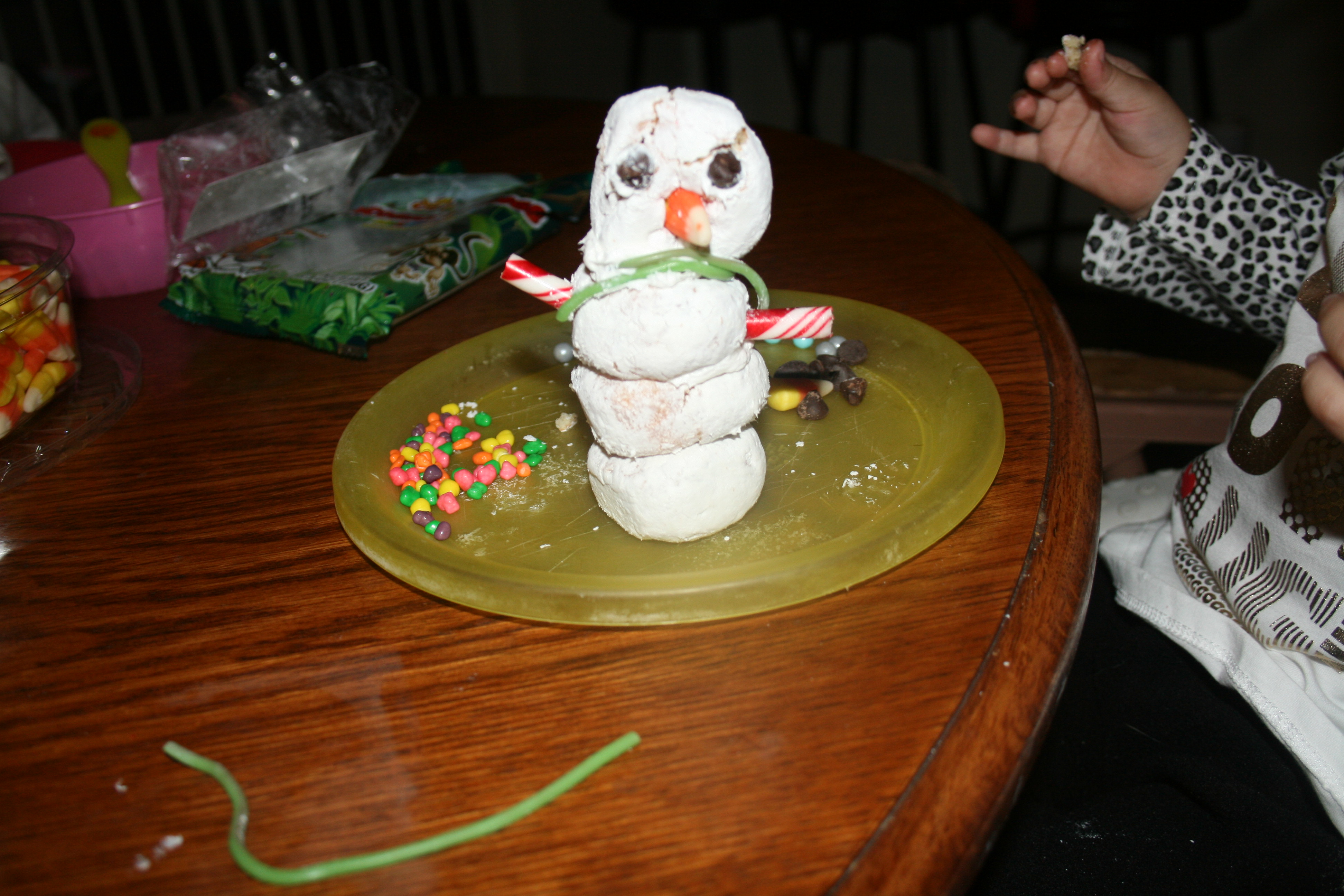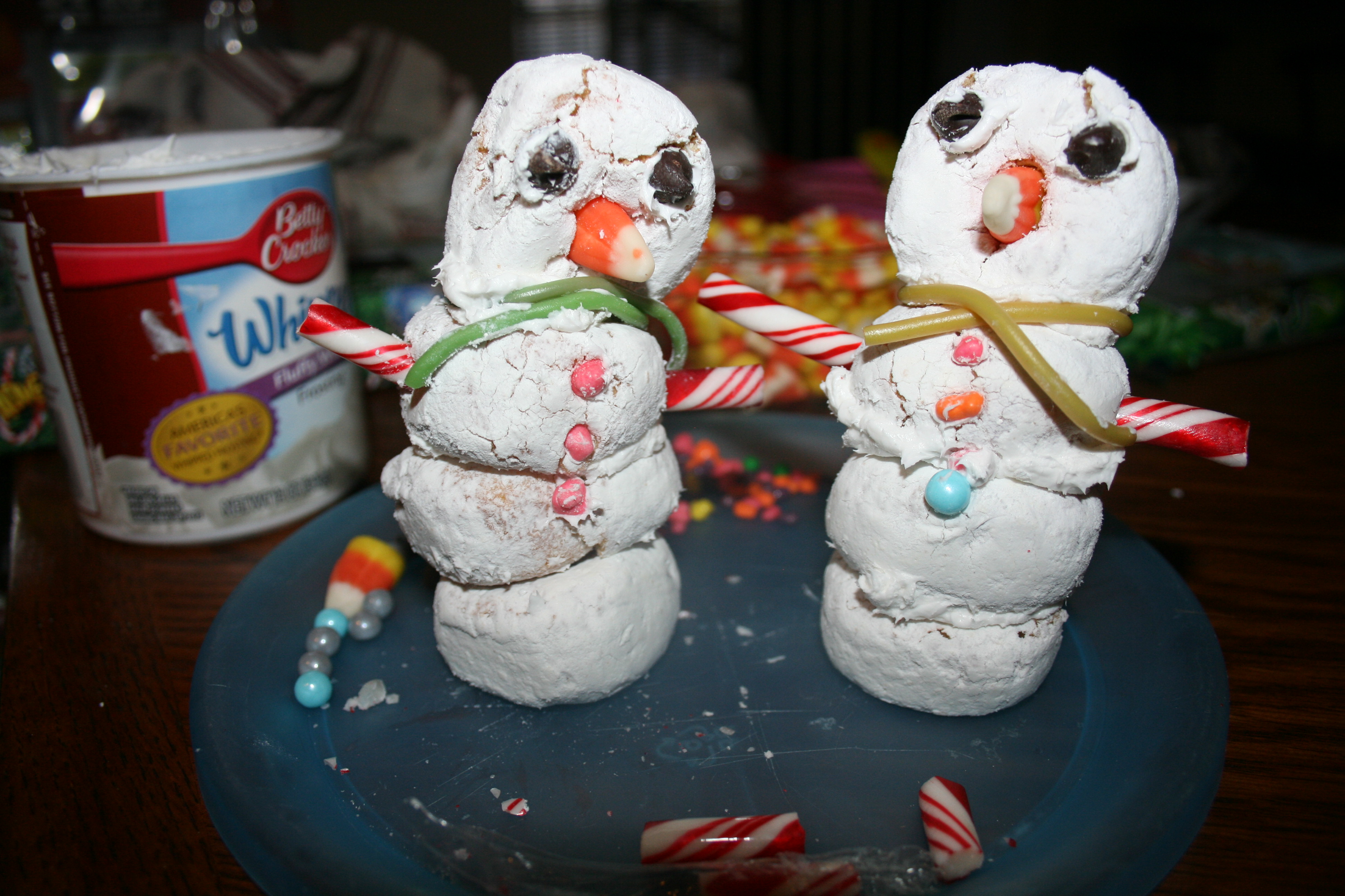 Chelsea and I enjoy just creating things to our hearts intent. Mrs Freshleys shared some fun activities with us so we decided to try making snowmen out of the donuts made by this company we did mix it up and add a bit of our flavor to it though. We got nerds inside of mini m&ms. We used jungle strands instead of licorice.