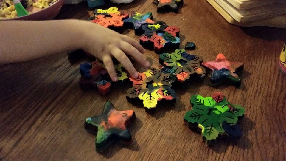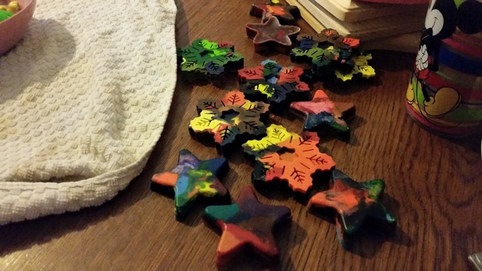 We placed our pans in the pre-heated oven at 275 degrees for about 10-15 mins or until all the way melted. Once melted let the crayons cool down for about 2 hours.