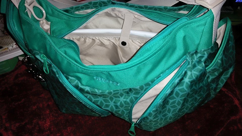 I was so excited when I found out that I would be able to review this diaper bag. I was looking for a bag that had a better handle and could hold things I needed in my purse as well as Chelsea’s necessities. Even though Chelsea is already 2 I like to make sure I am always prepared. She tends to be messy so I always like to carry a back up outfit, snacks, a drink for her and one for me, a couple of her toys, her wipes and some extra pull ups.