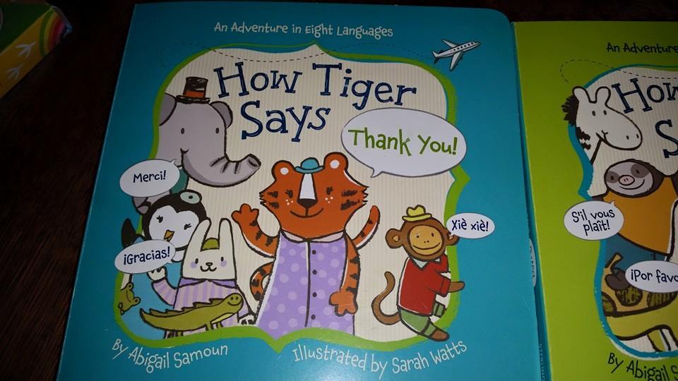 I just love that these books teach Chelsea about how to say Thank you and Please in 8 different languages. It shows how each animal travels from place to place and finds help in all the locations. They of course have to show their consideration for the assistance so Tiger says Thank you and Penguin Says Please. I love that it gives you a wide variety of languages to learn.